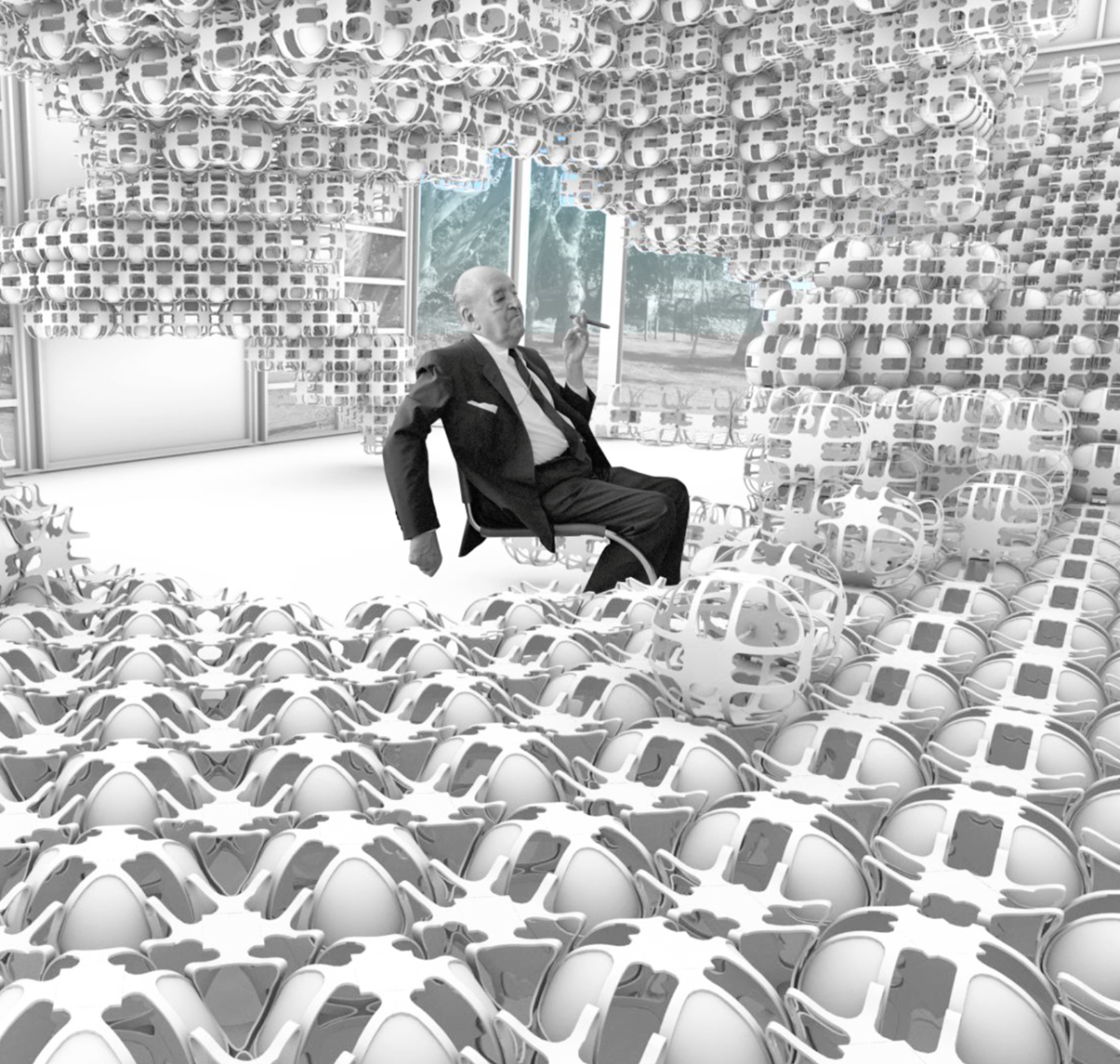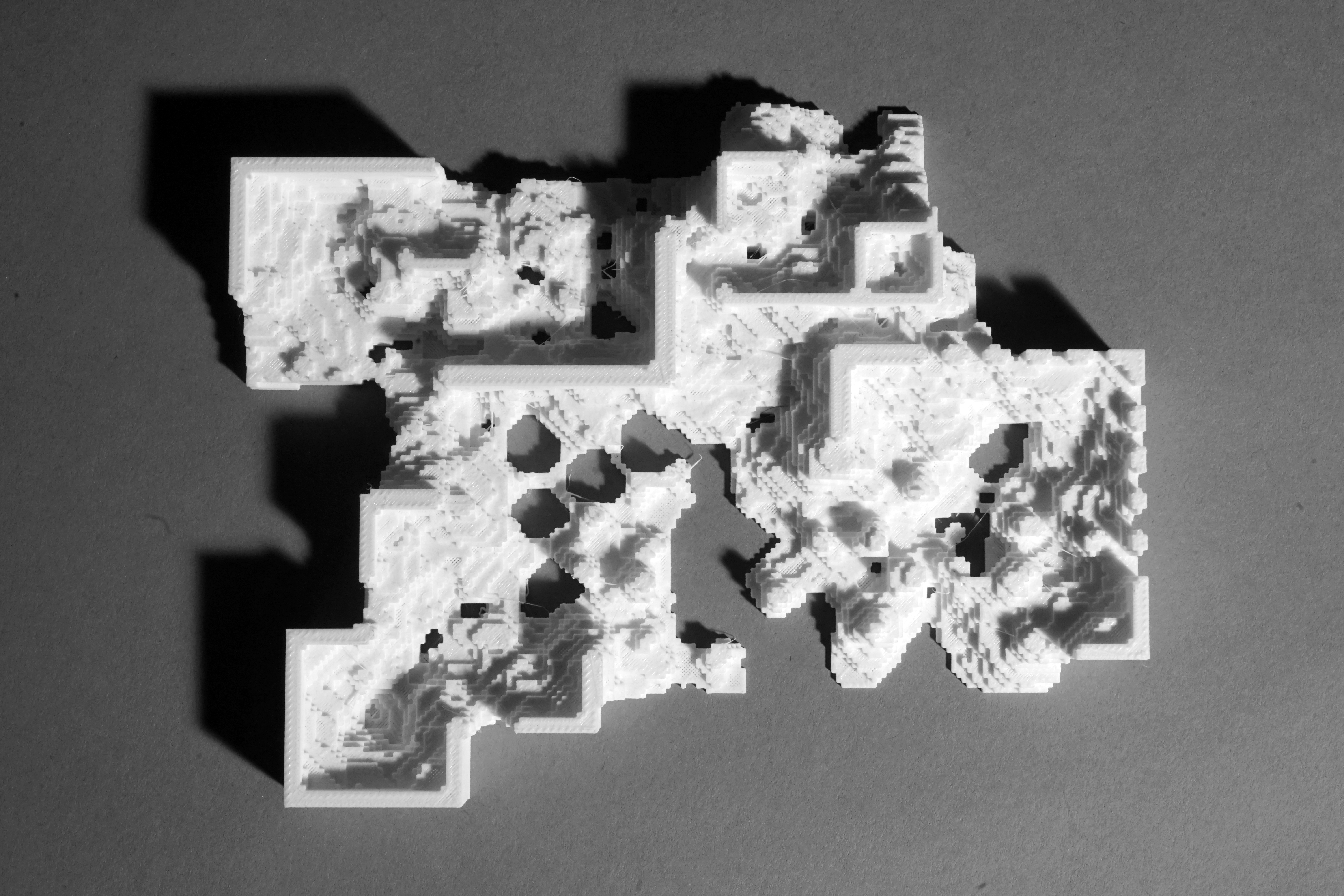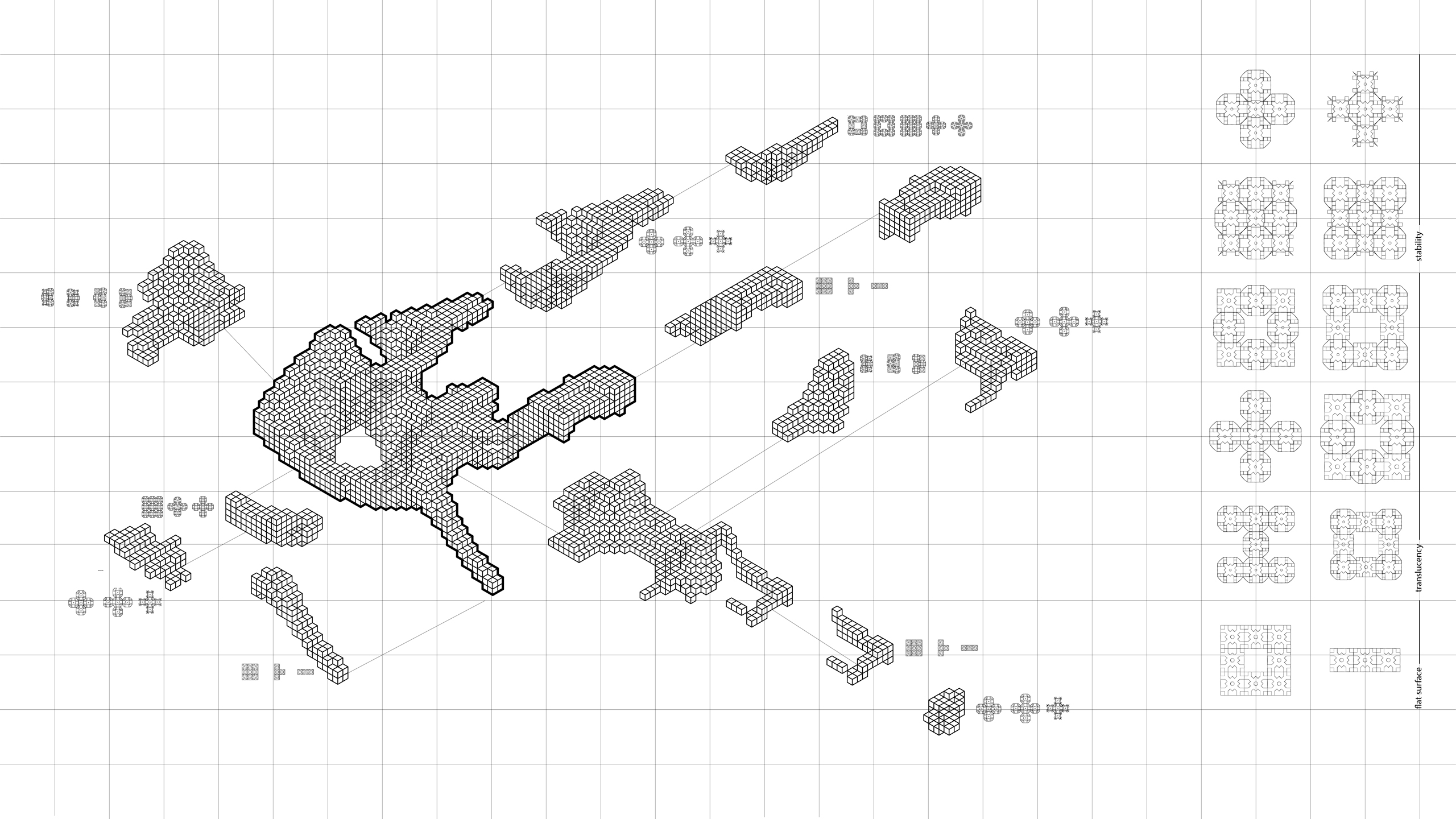 RE-FRAME is unit based system where reaction diffusion is a principle growth algorithm controlled by rule sets, parameters and time. Through the unit-to-unit interrelation, in the different scales and configurations, new computation design systems could produce continuous formations and actively engage with its environment (subjects and objects), be able to explore and operate with it.