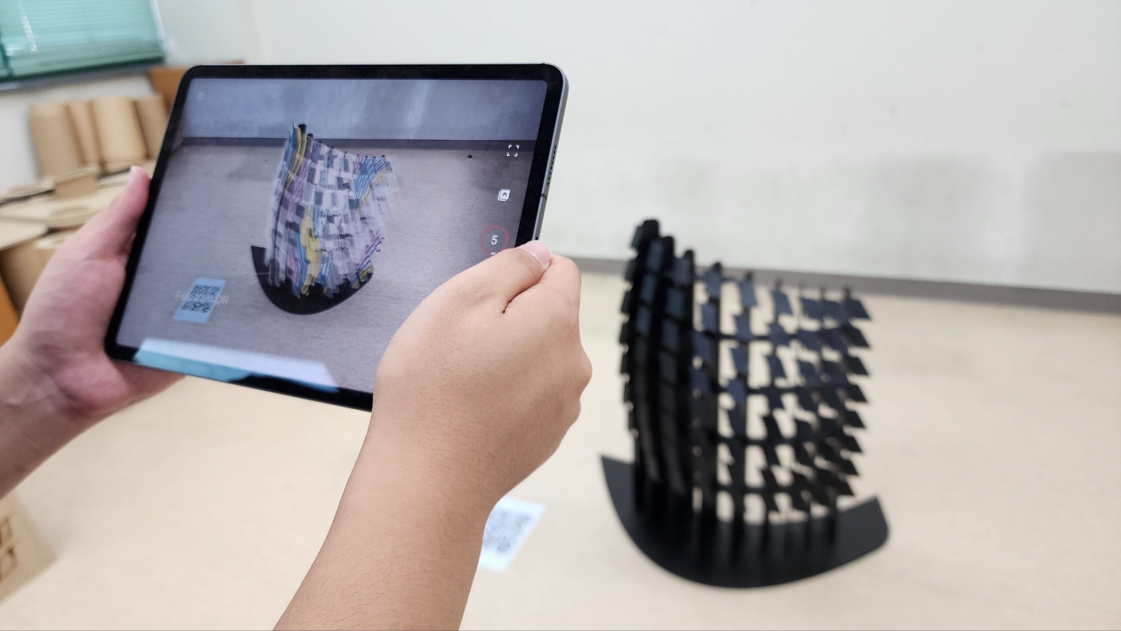 This project explored the convergence of robotic precision and ceramic craftsmanship. Central to the design was a pattern derived from Reaction-Diffusion algorithms, meticulously adapted to the unique geometry of each tile. The fabrication process integrated automated robotic toolpaths with manual techniques, transitioning between surface-drawn motifs and intricate perforations. To ensure structural accuracy and assembly efficiency, Augmented Reality was employed to guide the arrangement of components. The outcome was a hybrid workflow harmonising algorithmic logic with human intuition, advancing the boundaries of traditional masonry through contemporary digital orchestration.