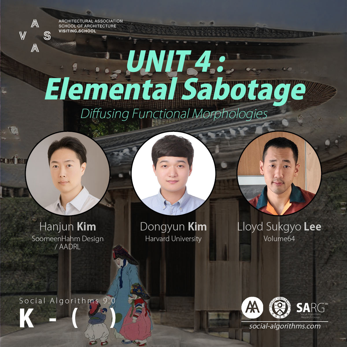 AAVS Seoul has been researching ‘Social’, ‘Algorithms’ and their co-location in the experimental architecture and urbanism for the last 10 years, and aims to open up a discourse platform adopting new design and pedagogical methodologies. The programme will run as intensive 10-day workshop with a series of lectures. Workshop will run on-site but may include partial online activities, subject to Covid-situation.