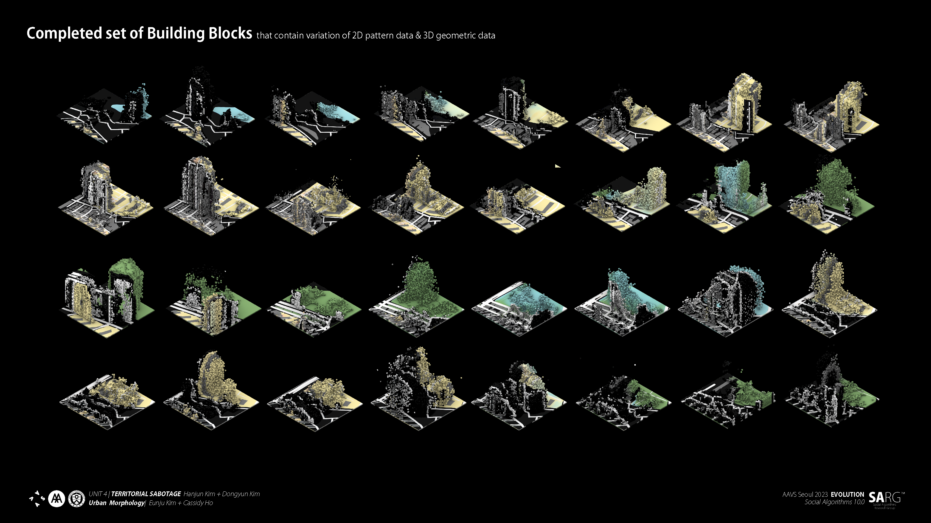 While these theoretical perspectives provide our unit with a robust intellectual backbone, we intend to execute our ideas using AI techniques. We will use 2D GANs as 2D plan generators of block boundaries, and 3D GAN for morphology generation of each block, in an attempt to redefine the city blocks of Seoul. These generated outputs will then be synthesized and rendered through diffusion models, providing an advanced and coherent representation of our theoretical framework.