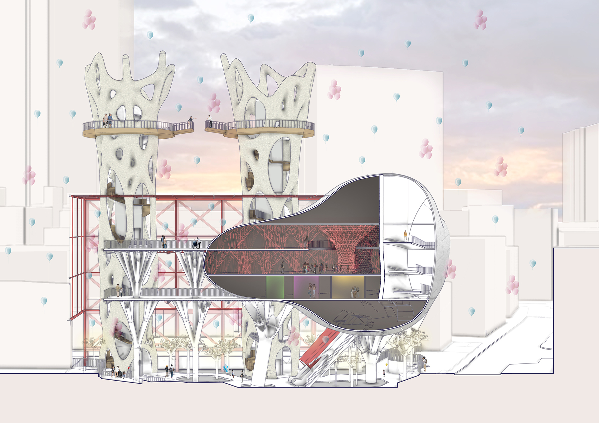 Year 5 developed civic centres and resilience hubs as living systems. By integrating programmes, structures and climate strategies, their projects created flexible spaces that mediated crisis and recovery while fostering participation and collective resilience.