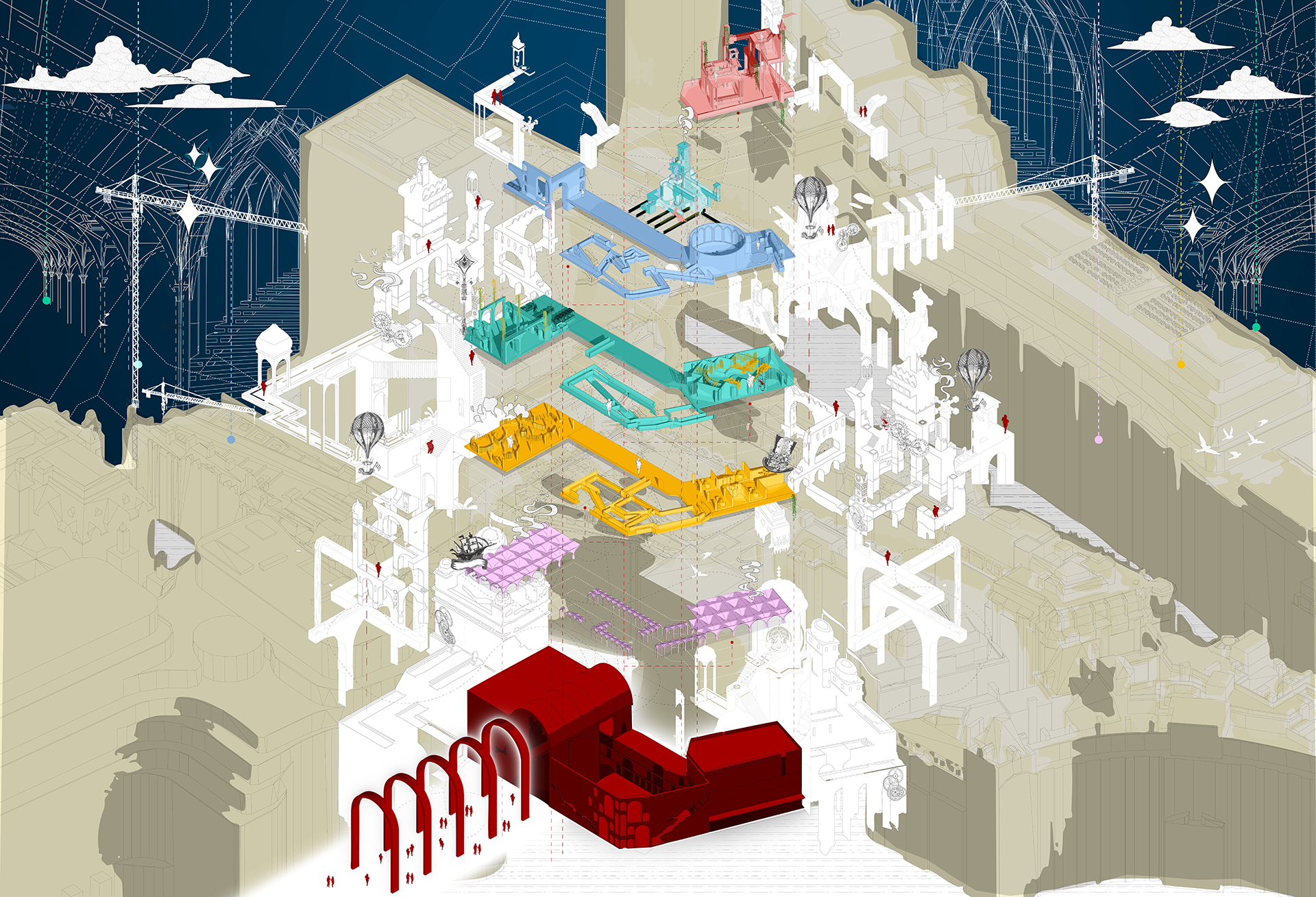 Year 4 projects focused on follies and transport hubs, prototyping inclusive circulation and resilient infrastructures. Their designs showed how small-scale interventions could sustain routines and empower communities during environmental, social and humanitarian challenges.